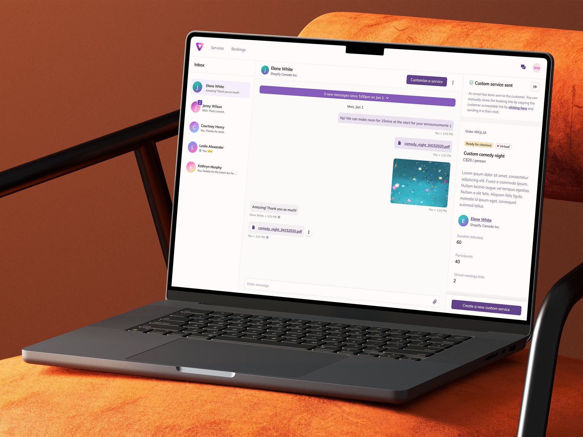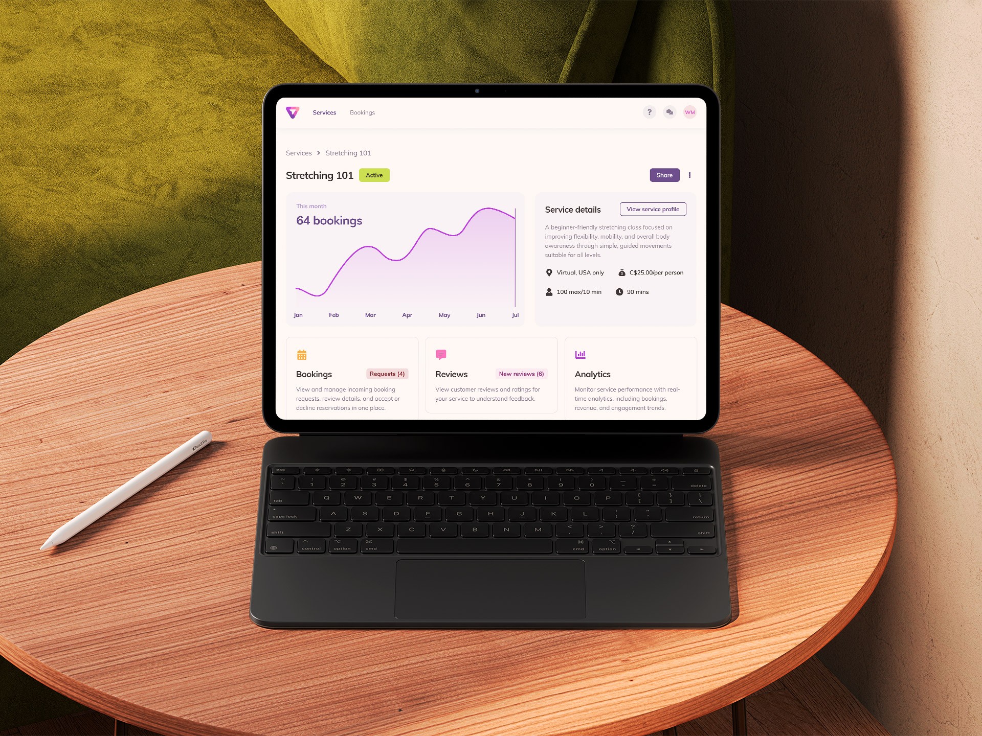 The Provider Portal allows all vendors self-serve access to web tools for service management, analytics, chat, custom bookings with clients, and more.