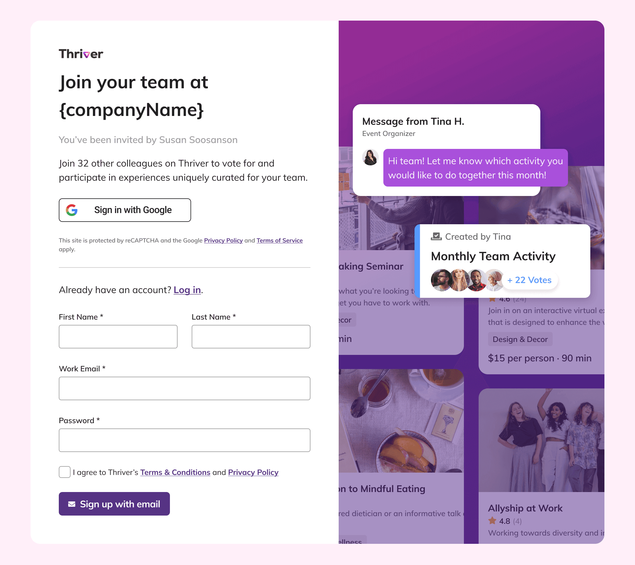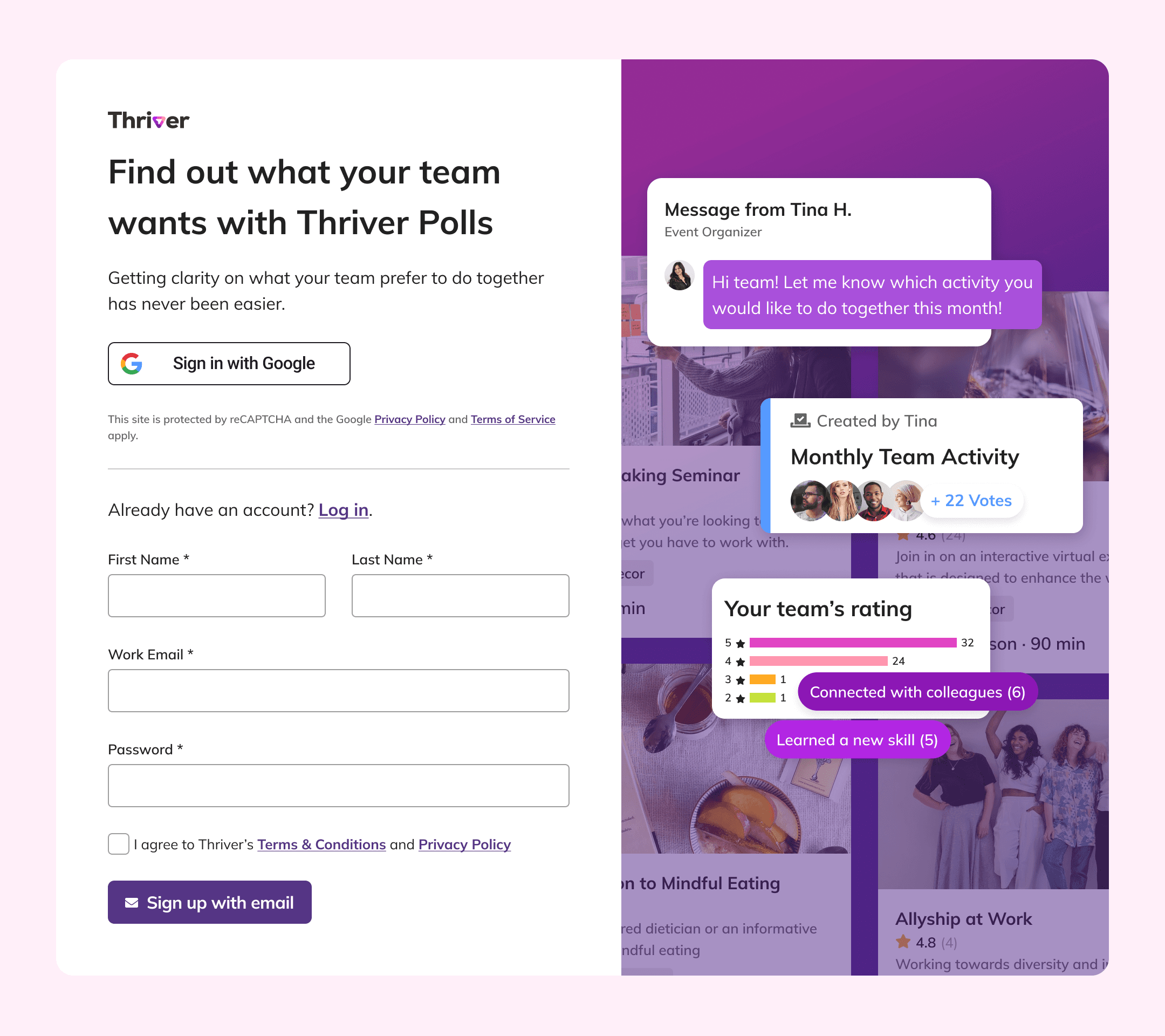 Facilitating the team's socials on Thriver is one of my favorite little rituals … it feels like a hub where we all come together despite being away from the office.